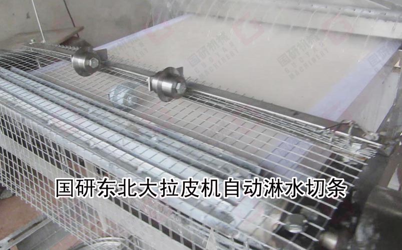 乐鱼网页版牌东北大拉皮机(粉皮机)采用自动下浆、蒸汽蒸熟,自动淋水分离 ,自动切条、切片(根据客户的需要订制)。生产过程可不需要专人操作,自动化生产。生产的拉皮晶莹剔透,韧性强,口感好,生产效率高。每公斤淀粉可生产拉皮4.5-5.5公斤,该系列产品有多个规格,适合不同投资规模的客户需求,办食品加工厂,餐饮连锁店,单位或学校食堂适用。