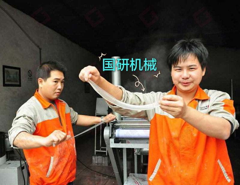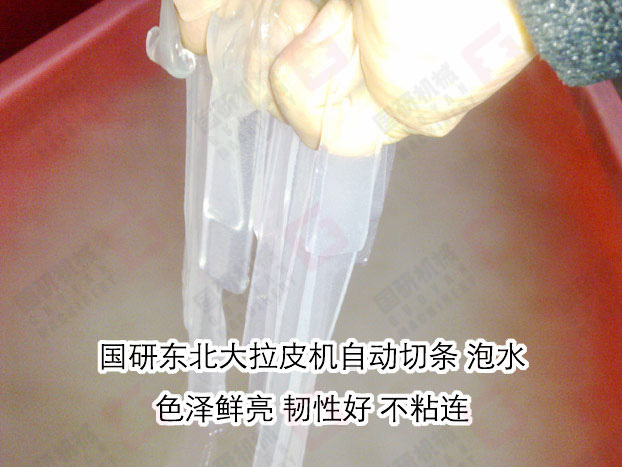 5、该机生产的拉皮、粉皮厚薄可任意调节,保全了原料的全部营养成份,味道鲜美,清亮剔透。