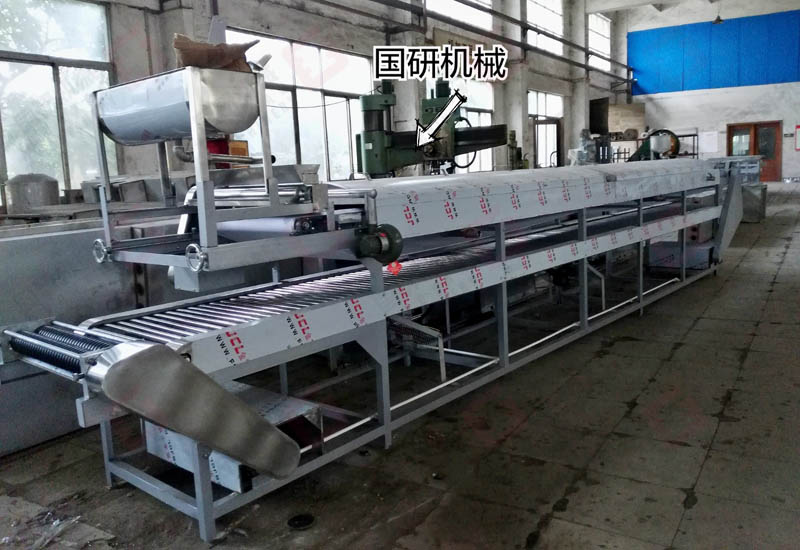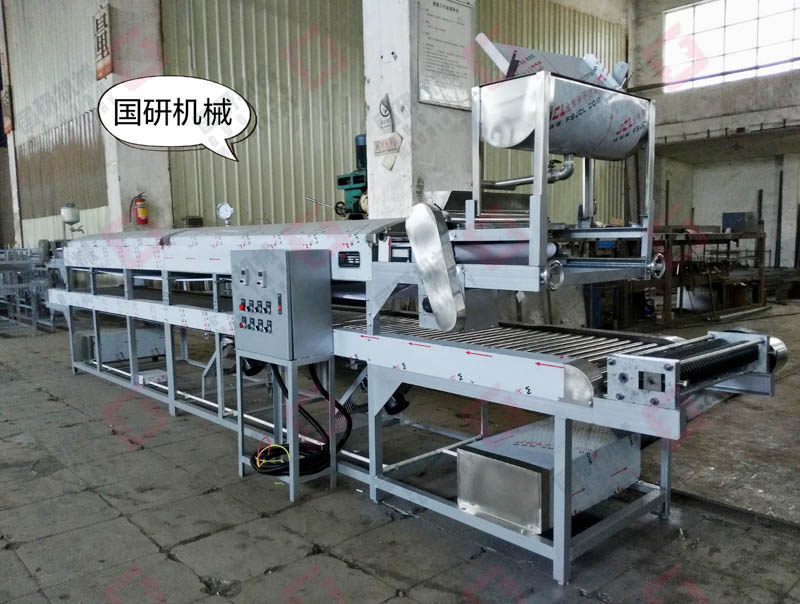 2、实现自动下浆、一次蒸制成型(不需再次水煮)、自动切条、切片、自动淋水(或刷油)、自动收粉,实现全自动化生产;(可根据客户不同需求订制)