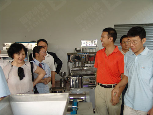 在参观塑料机械、包装机械和食品机械展厅时,代表们饶有兴趣地向陪同人员询问机械的性能、价格和市场情况。当代表们走近办制袋厂的配套机械产品吹膜机、制袋机、印刷机、破碎机、塑料造粒机和办编织袋厂的配套机械产品拉丝机、收卷机、圆织机、印刷机、覆膜机、裁袋机、缝包机时,对这种一站式的经营模式大加赞赏;在食品机械展厅得知乐鱼网页版牌河粉机是全国第一品牌时,好几个企业家马上表示说,乐鱼网页版牌河粉机的名气的确很大,他们开车天天听乐鱼网页版牌河粉机的广告。