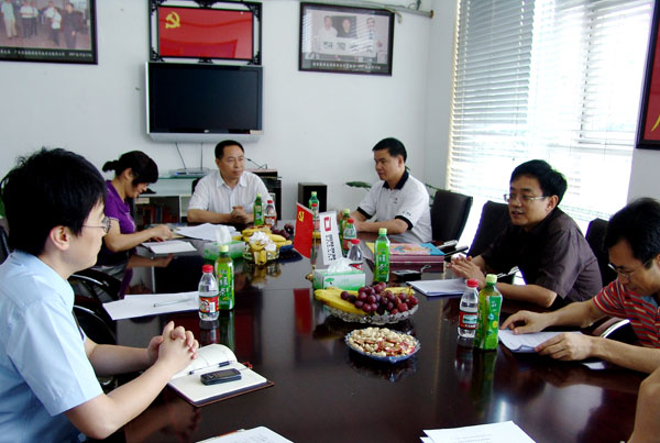 杜党勇书记一行在公司党支部书记、副总经理王声跃、副总经理陈蓓的陪同下参观了公司厂容厂貌和生产车间,在参观过程中,杜书记不时详细询问公司的生产经营情况,并仔细了解各类机器的性能特点,当来到公司深入学习实践科学发展观活动的宣传栏时,杜书记不禁驻足认真欣赏起来,连说:很好,办的不错。